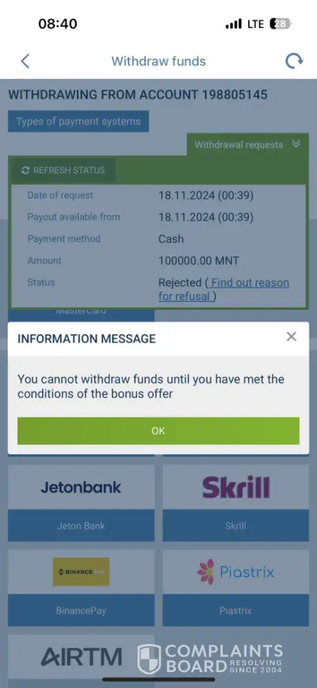 Specify please did your issue resolved? Did you withdrawn your funds?