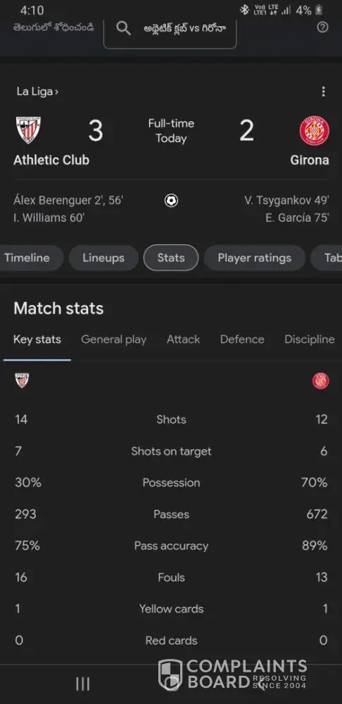 Greetings , In the match between Athletic Club vs Girona Spain league The yellow cards are Two (2) 1:1 - By each team as per the official source of that league But you guys settled as one 1: 0 Later after sometime yours stats update to 1:1 correctly But betslip didn't get updated ! My bet slip number are settled loss I've placed total over 1.5 yellow cards