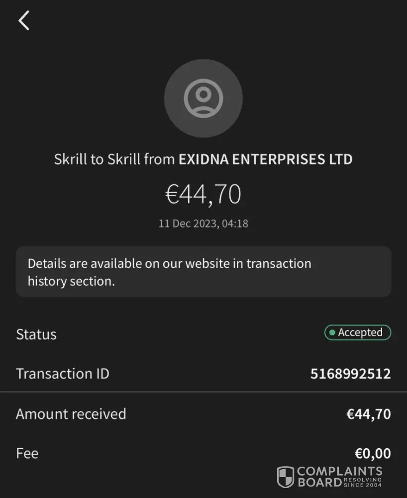 1- As shown in the pictures on this post (and 1xBet can easily verify it on their system), i made my deposit via Skrill on September 1 2023 and made an withdraw to Skrill on December 11. But now the system is not accepting skrill as a withdraw method.