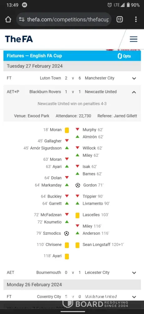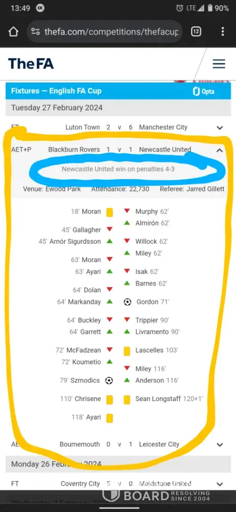 A match between Blackburn rovers vs Newcastle of FA Cup [protected])