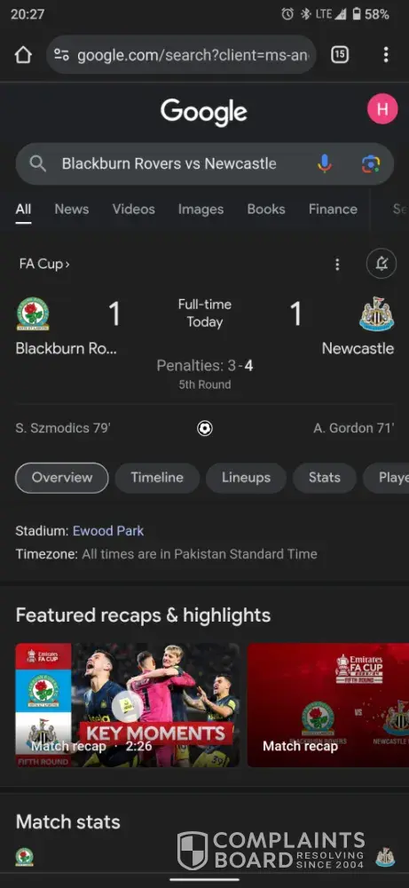I am again attaching the proof of the match result from official sources.