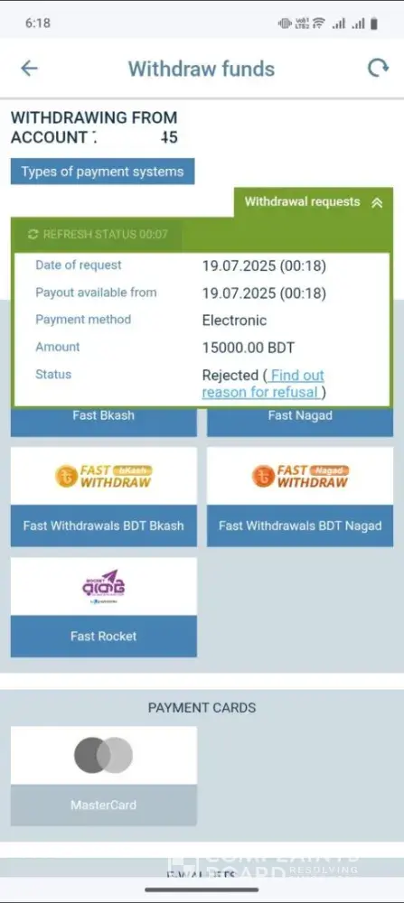 Read full complaintWithdrawal funds