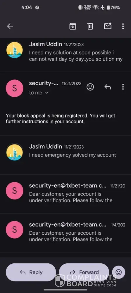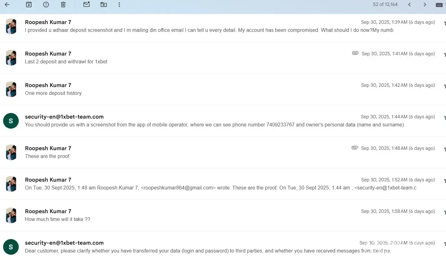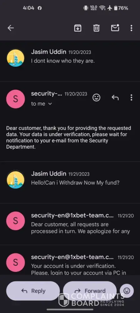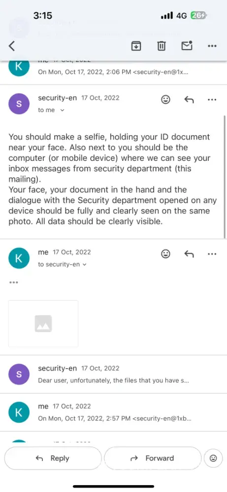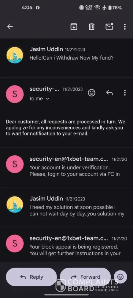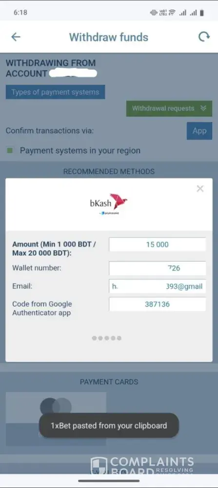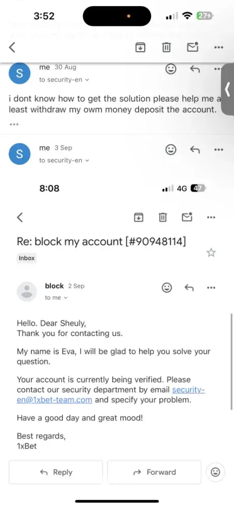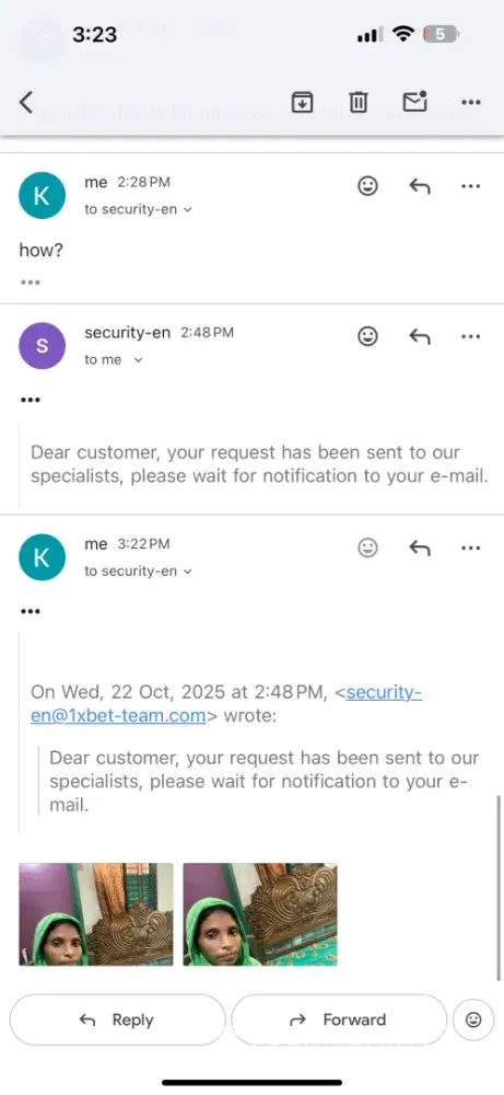 Read full complaint1xbet security department
