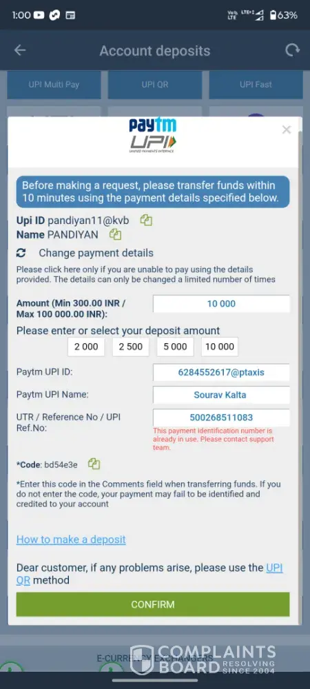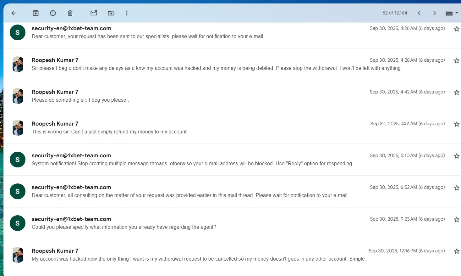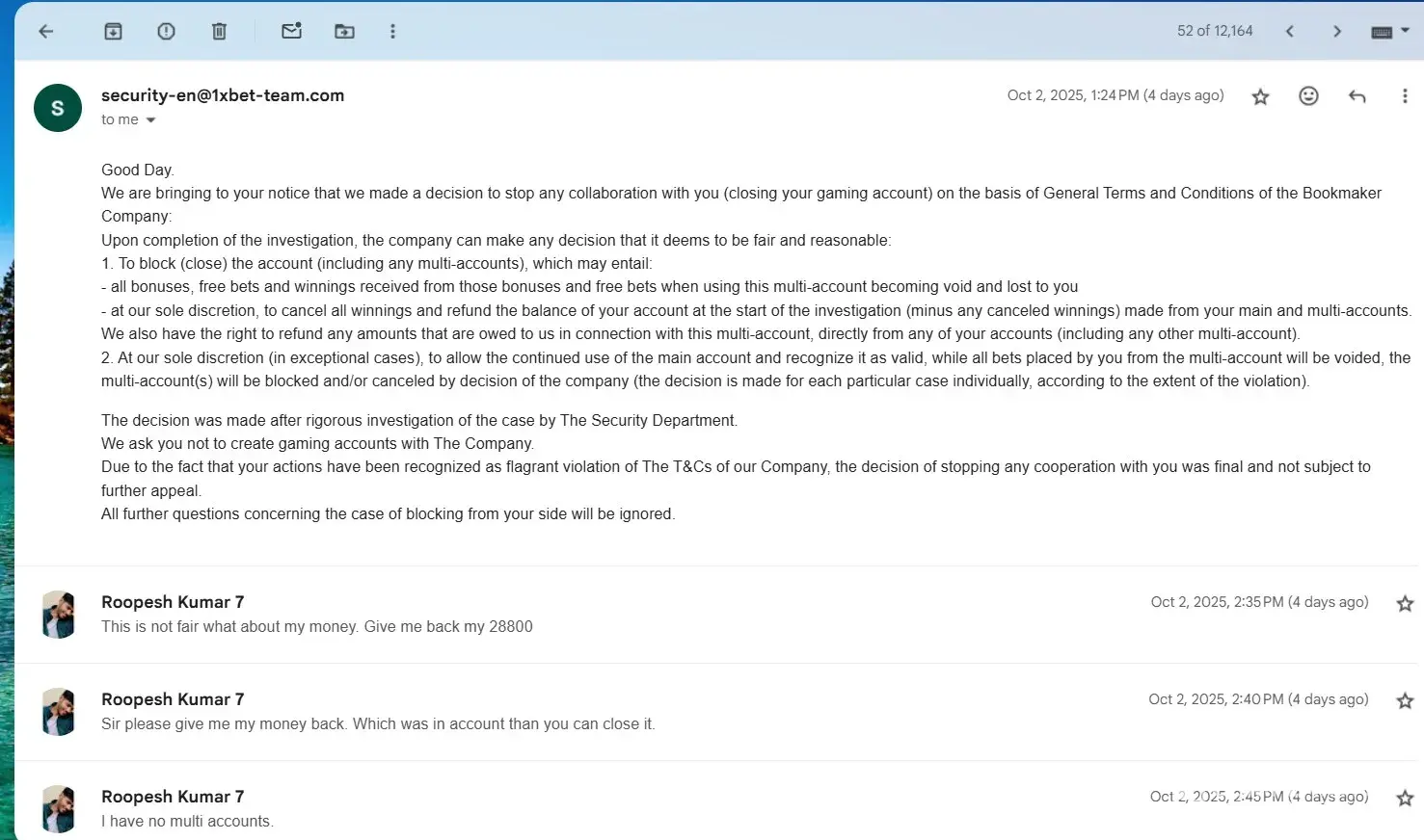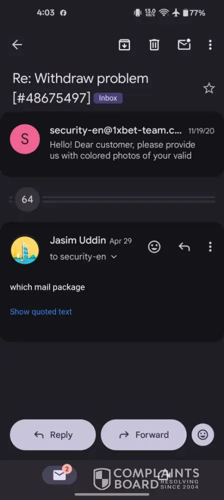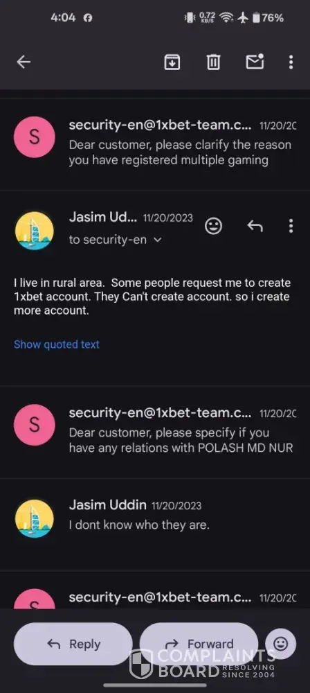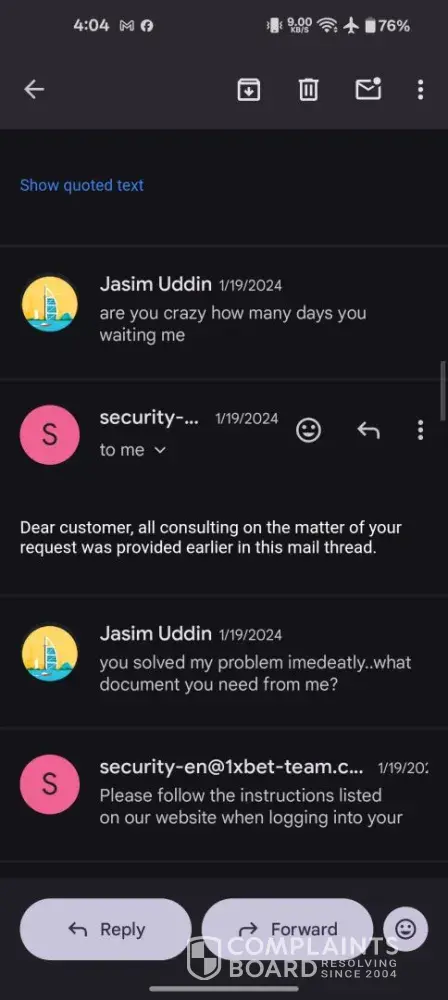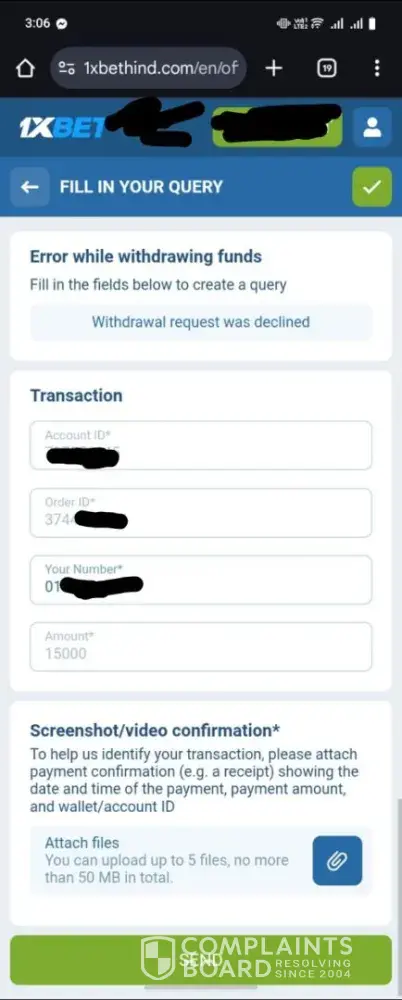 Read full complaint1xbet security department