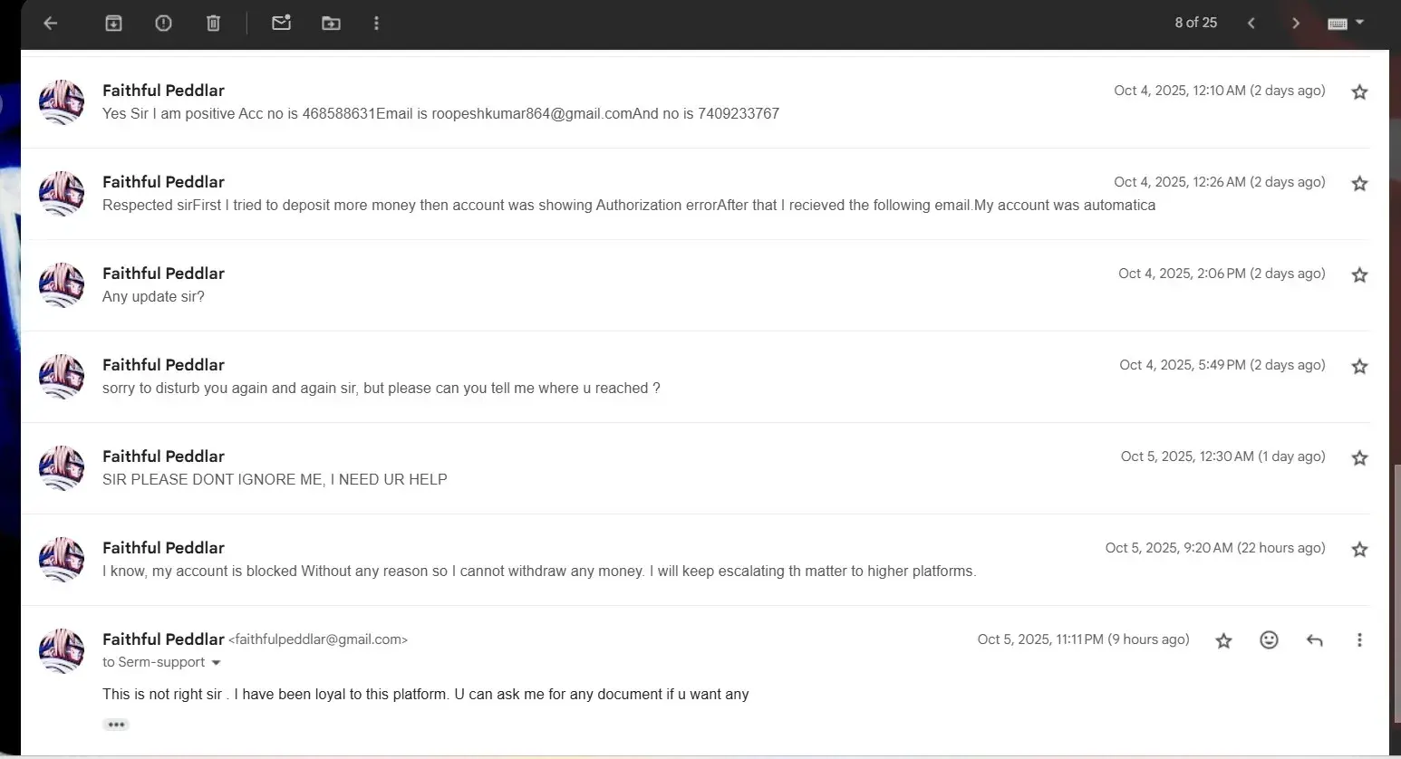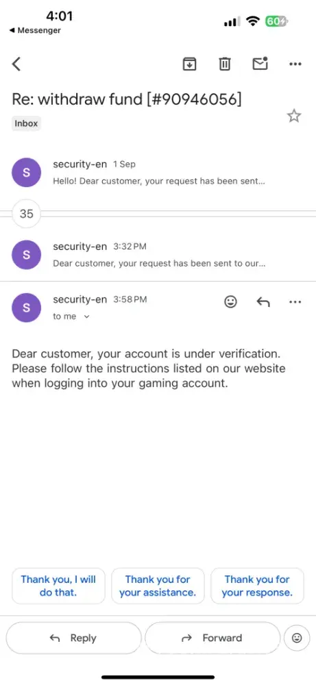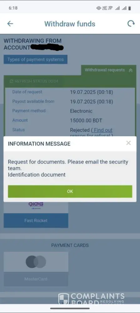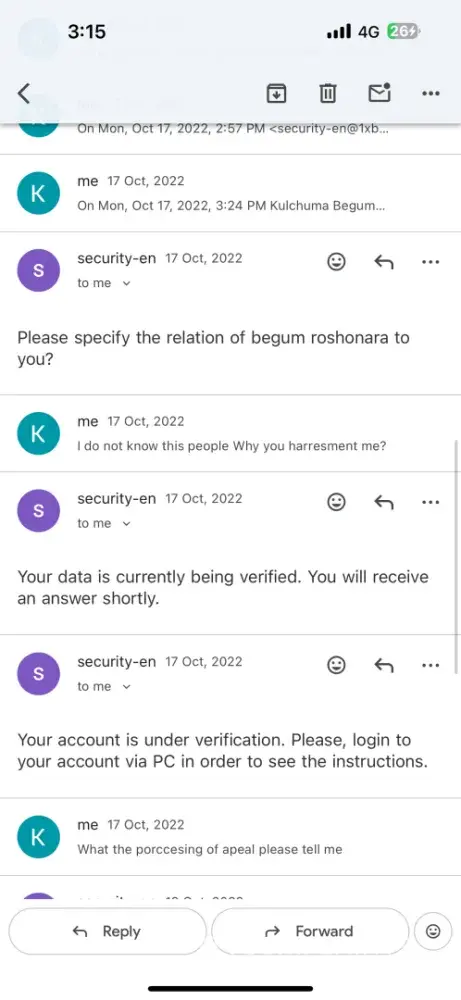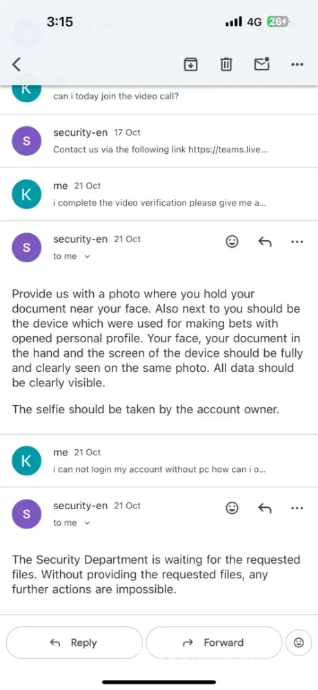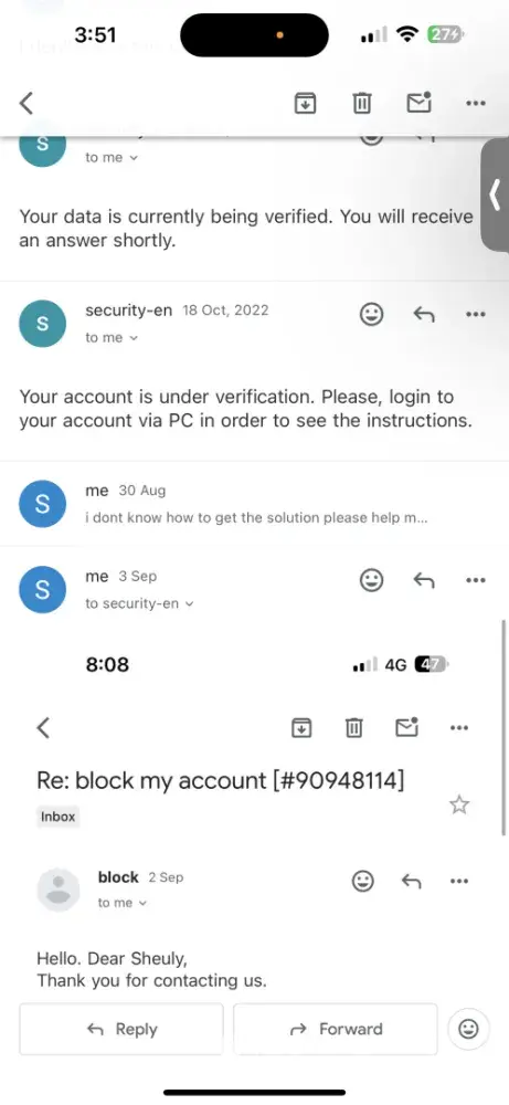 I’ve been trying to resolve an issue with my account for some time now, but unfortunately, the support team has completely stopped responding. I’ve always tried to be cooperative and patient throughout this process, providing every document and explanation they asked for.