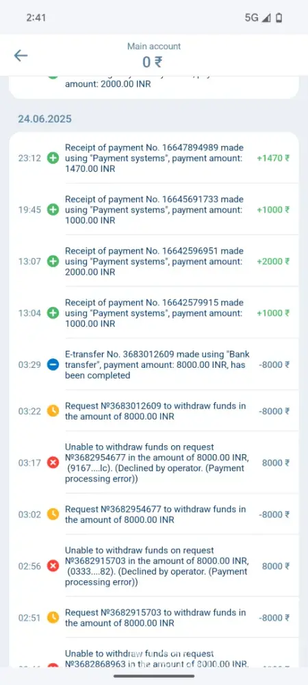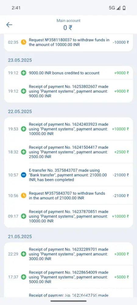 I'm writing to report an issue with my 1xBet account (ID: 406952841). I've withdrawn ₹21,000 on May 22nd and ₹8,000 on June 24th, but I haven't received the payments in my bank account. The 1xBet team claims they've processed the payments and provided me with UTR numbers: SURYN25142728402 for ₹21,000 and SURYN25175961961 for ₹8,000. However, when I...