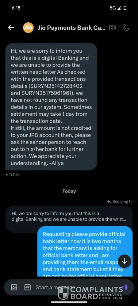In between I have shared all my required details latest bank statements and emails from both the banks to your support team.