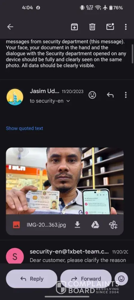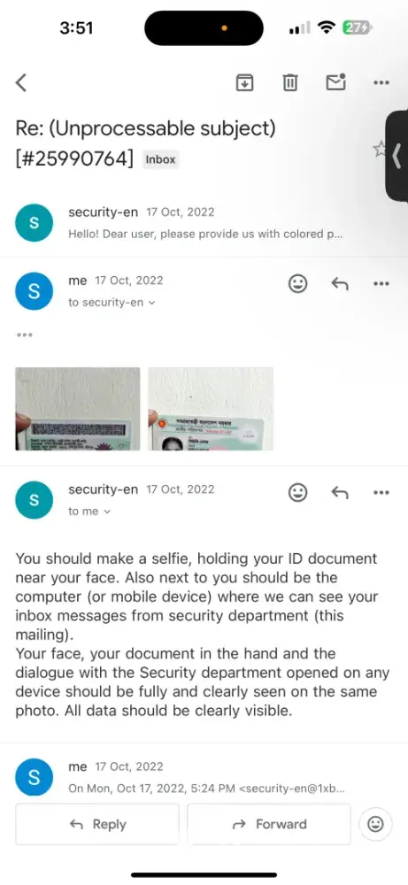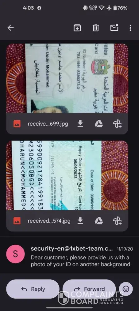 Read full complaint1xbet is withholding my funds unjustly and ignoring my requests to verify my identity, even though I have submitted: