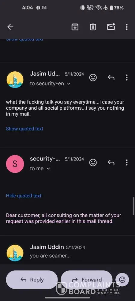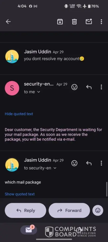 Read full complaintUrgent request for account access and fund recovery – no response from security department