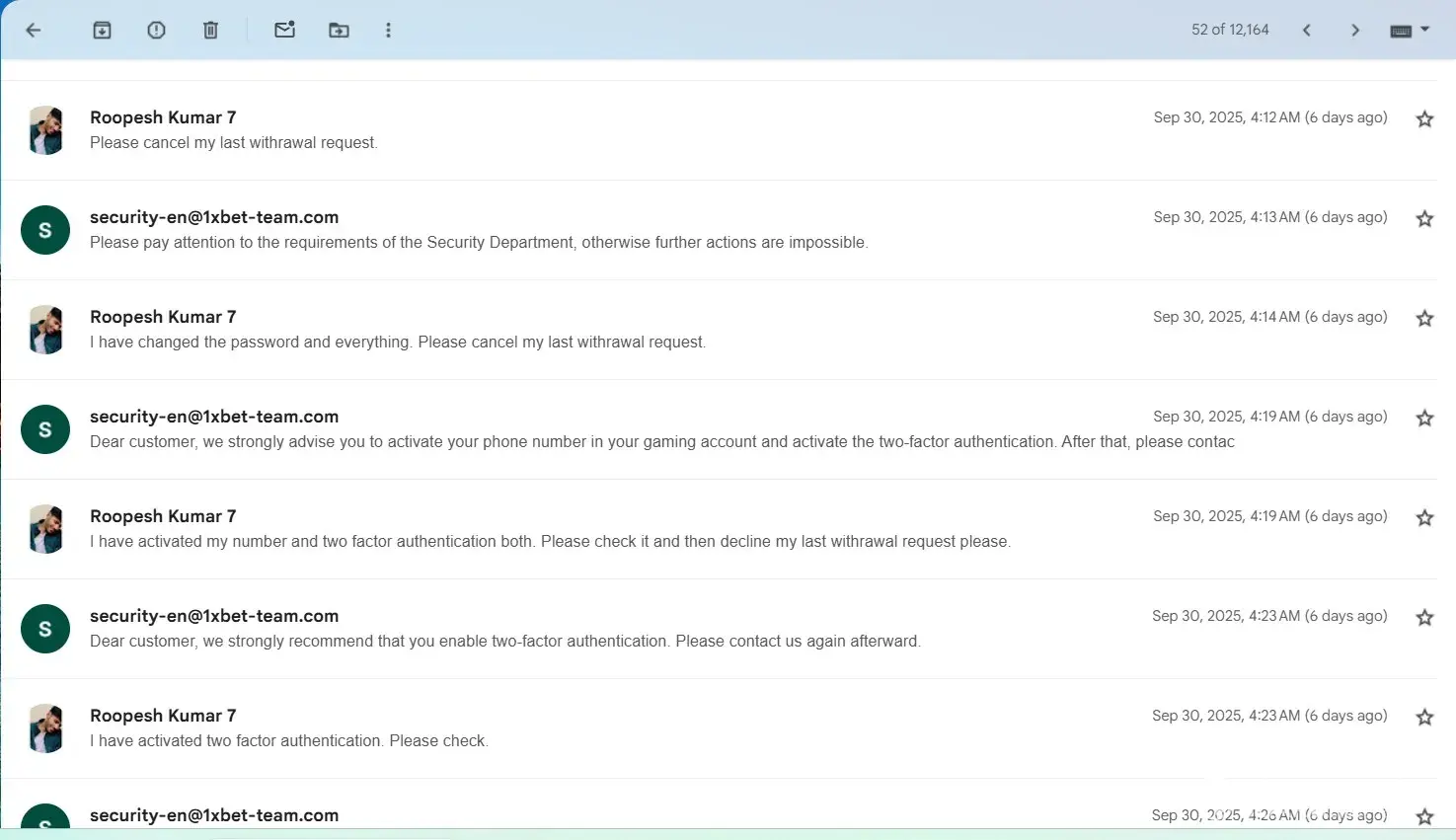 1xBet sounds like it's giving you the runaround big time. Losing an authentication code shouldn't turn into a two-month ordeal of repetitive document requests. And when it comes to withdrawing your winnings, it seems like they’ve mastered the art of making things as painful as possible. Keeping all those messages saved was a smart move — it’s clear this platform is more about stalling than serving its users.