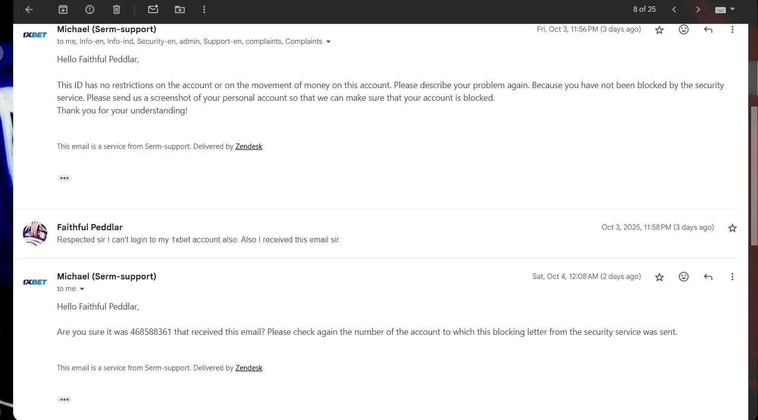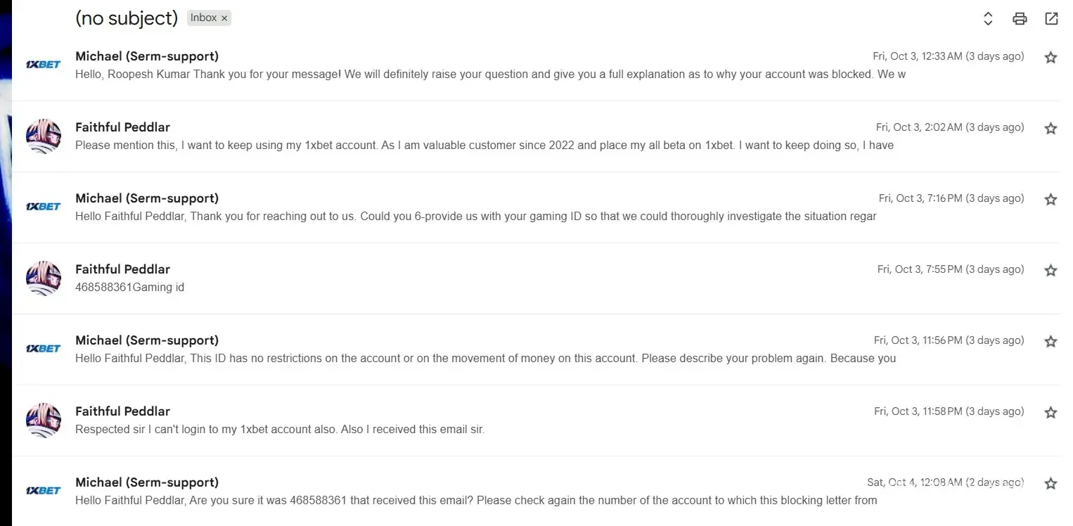 My 1xBet gaming ID is 468588361, and I am writing this with a heavy heart but also with full respect and hope that someone from the 1xBet support or security department will notice my message and understand my situation. I have been a loyal 1xBet user since 2022, playing regularly and trusting the platform completely. I’ve always followed every rule...