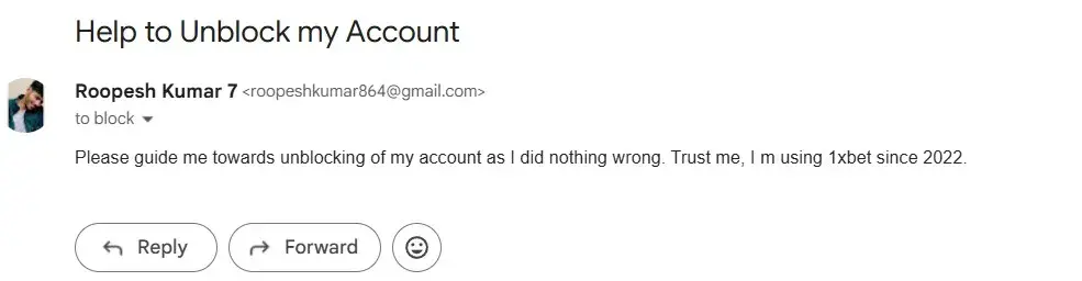 Read full complaint1xbet block my account