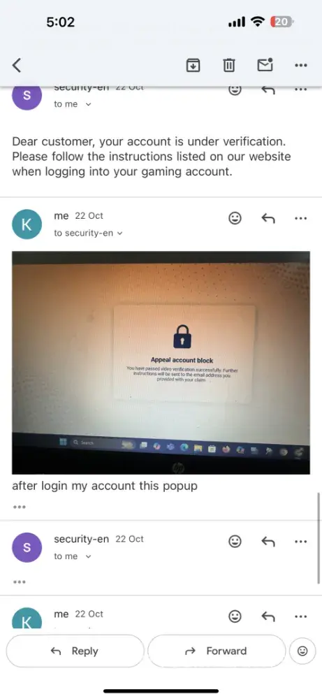 What kind of jock this is? I have not send any email to block my account from my registered email adress why you have blocked my id? Block team dont response me [protected] I have applied from the email address attached to my gaming account. And i am conforming i am the owner i didnt mailed you to block my account check properly please ⛔⛔🔴 you...
