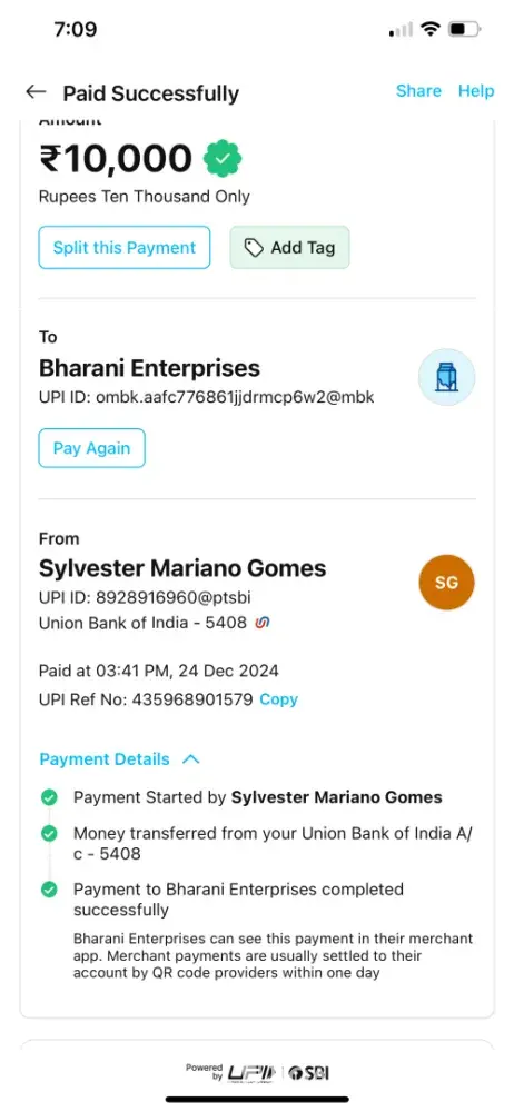 I had deposited 10000rs and its not be been credited in my gaming account.References no [protected] to Bharani Enterprises