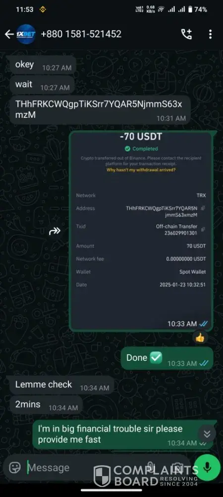 I am writing to formally raise a complaint regarding an issue I am facing with withdrawing funds from my 1Xbet account. I had deposited money into my account using AstroPay; however, I am now unable to withdraw the funds because 1Xbet platform requires withdrawals to be made via the same method used for deposit.