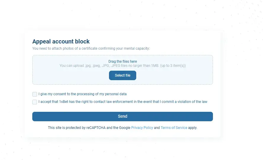 #Explanations that the rules do not specify specific documents that can request 1xbet.