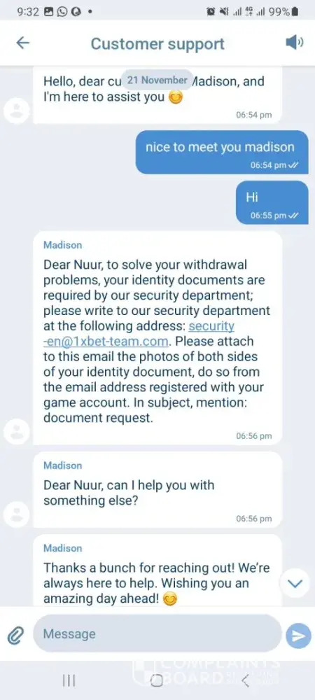 1xbet supporters my complaint is not resolved yet pls solve my complaint