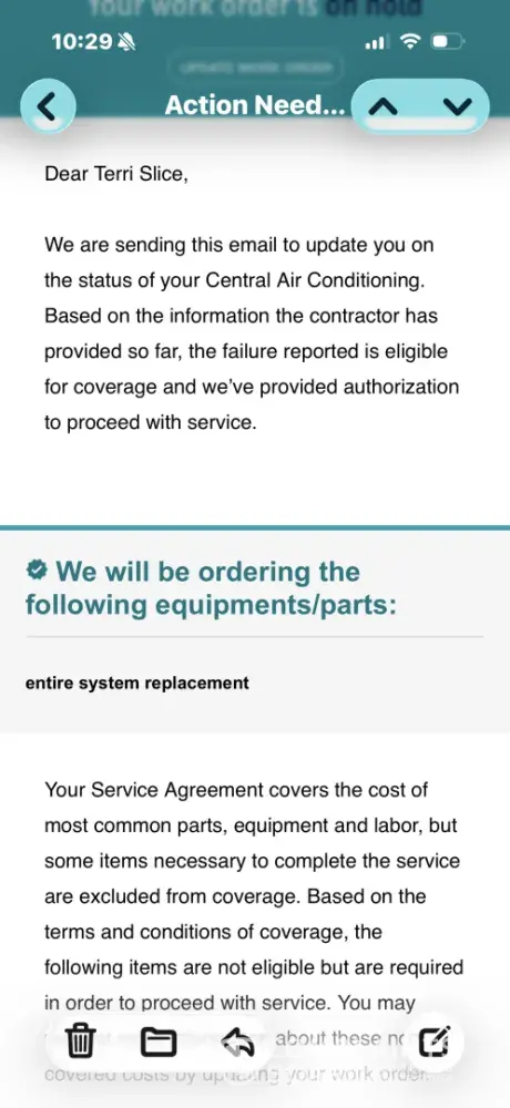 I have been a customer since 2019, I have the supreme coverage. Our HVAC unit wasn’t cooling and I placed a service request. 1st contractor came, stated needed Freon and hole patched, because it needed more than 2lbs, authorization had to be obtained. Then a 2nd contractor was sent and they recommended replacing due to age and since we have supreme coverage...