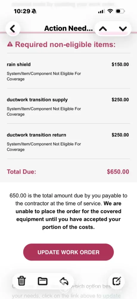 Desired outcome: An actual 24hr support line in which the homeowner can submit their diagnosis and get their critical home systems fixed in some sort of timely manner. ORPreapproved amounts that are realistic.