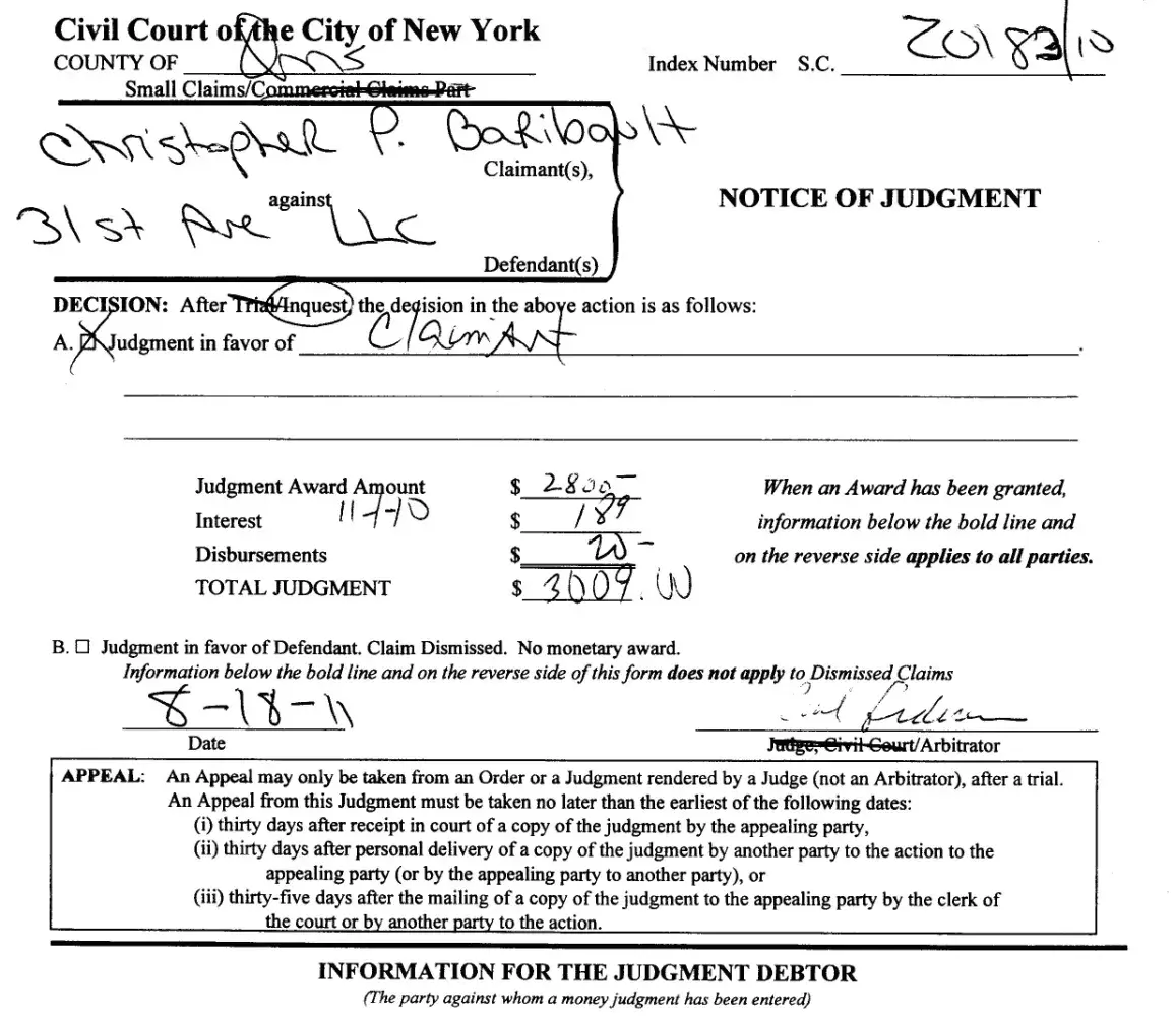 CIVIL COURT CASE UPDATE [protected] AGAINST 31 AVE LLC [protected] 23rd street