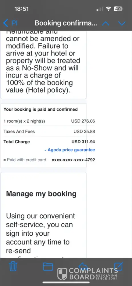 I insisted that Agoda resolve the issue by determining why my cancellation request from October had not been processed. They claimed they had no record of my cancellation. Since then, I have been urging Agoda to investigate and escalate the matter, as I should not be held financially responsible for their oversight. However, they have been uncooperative and suggested I resolve the issue with my bank. They have even threatened to take action over a negative review I posted unless I agreed to remove it. When confronted again about their failure to cancel my booking, they conveniently had no record of the conversation.