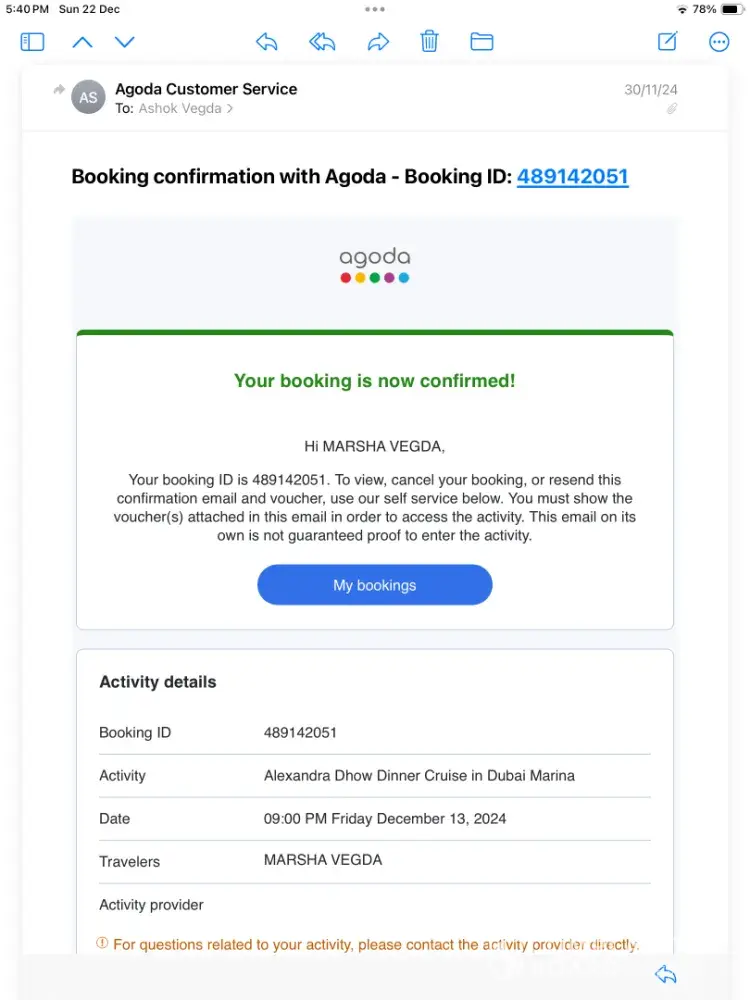 Claimed loss: Lost vacation time dealing with AGODA's fraudulent practices.