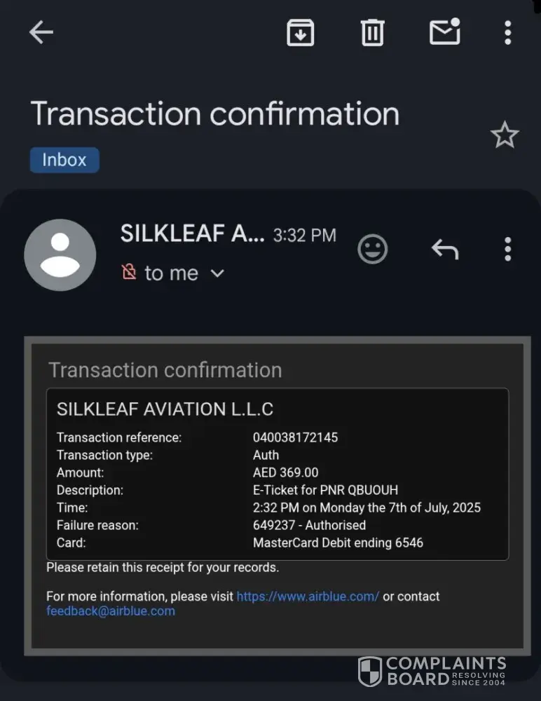And I am not glad to lodge this Complaint but if it will not be settled, then I can say, your company will be in the same line as Shaheen Airlines...