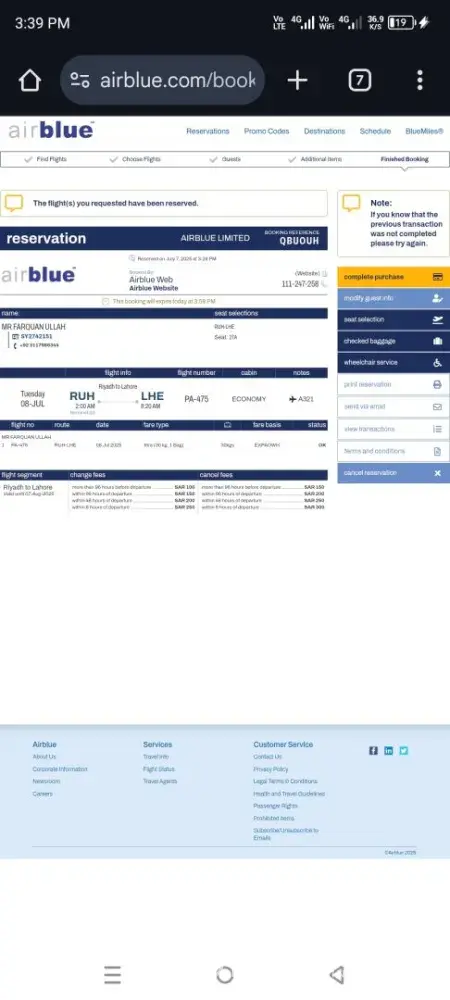 Team, Please be informed you that I booked flights and quarantine package with airblue airline for my family and they reached in jedda International Airport midnight 06-03-2022 When they immigration process completed they come outside they didn't found quarantine team due to government policy changed regarding quarantine they waited more then 3 hours after that I picked up by my self from Airport I requested to airblue quarantine team Please check with hotel team to refund my quarantine amount because my family suffered and didn't get services from the quarantine team there was package for my family for quarantine for 5 days + PCR test Plus transportation services there 2 passport I paid amount 1580 SAR but now they're making excuses searching new new excuses actually they didn't give services and they don't want refund my quarantine package amount which is against Saudi government low (article/617854), dear team kindly check my concern and force to airblue quarantine team to refund my amount 1580 SAR because they're ignoring my request as per Saudi government low all airline should refund quarantine package amount who landed after 5 march this flight laded 06-03-2022 and quarantine package is star from 06-03-2022 it mean airline should refund quarantine package amount all airline should follow the article/617854 because airblue is under CAA and GACA so kindly force the airblue airline let airblue airline force to the hotel for refund my quarantine amount Please check attached for proofs.