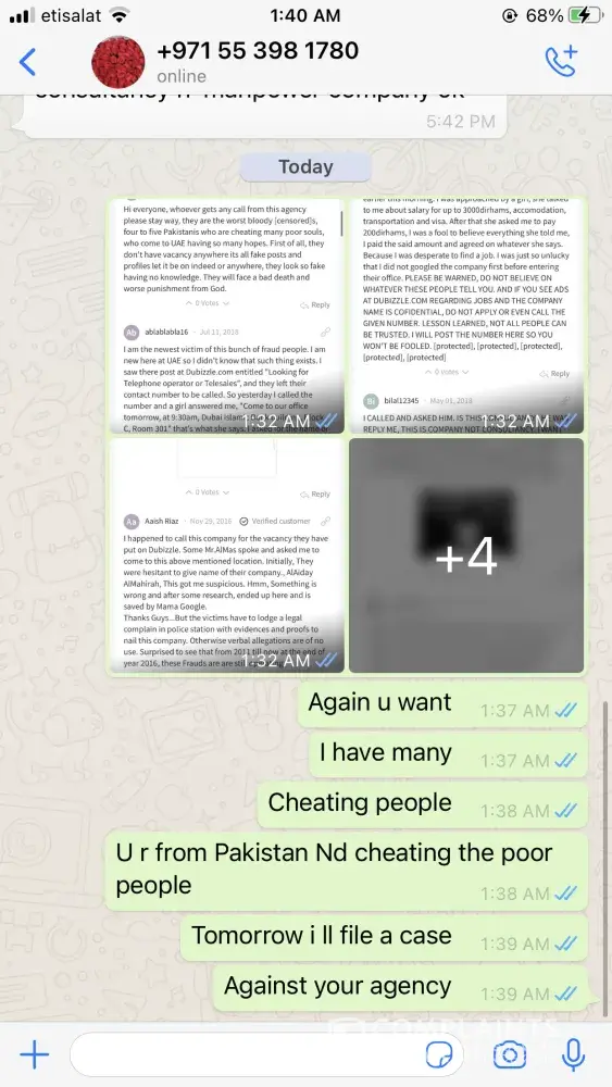 Hi everyone, whoever gets any call from this agency please stay way, they are the worst bloody [censored]s, four to five Pakistanis who are cheating many poor souls, who come to UAE having so many hopes. First of all, they don't have vacancy anywhere its all fake posts and profiles let it be on indeed or anywhere, they look so fake having no knowledge. They will face a bad death and worse punishment from God.