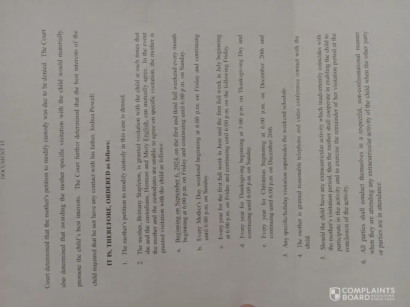 I have asked Brad what can I do but he said nothing since the order was worded like that. I feel that... I should be able to see this child. I am attaching documents to help you all in this case.
