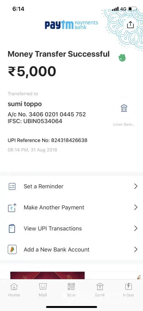 Bank Account>State bank of India NAME: F. C ROSANGZUALA A/C NO: [protected] IFSC: SBIN0001539 BRANCH: AIZAWL.