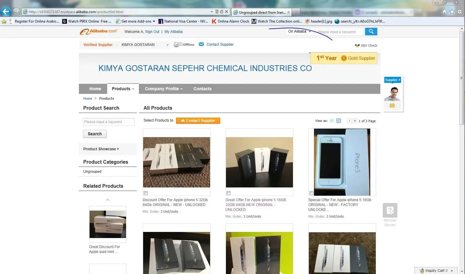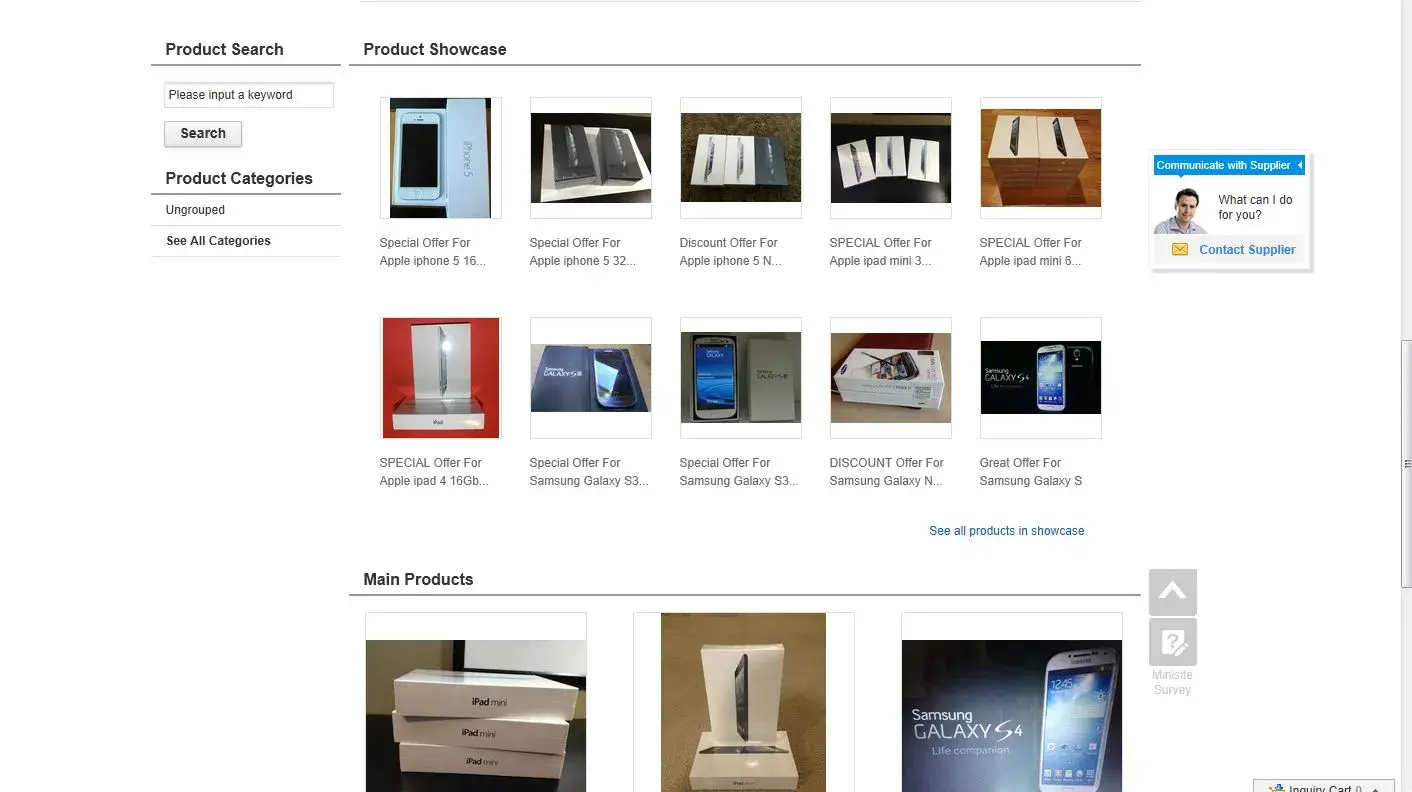 This company places a fake web page showing all the inventory they have available. Samsung Galaxy Note 2 and Ipads, etc. http://jafard.trustpass.alibaba.com/. this web page s verified and gold member status. After you place email for product information he emails you back with a contact