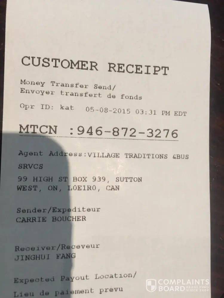 They right away emailed me back saying that the received the money and will ship the watch out the next day