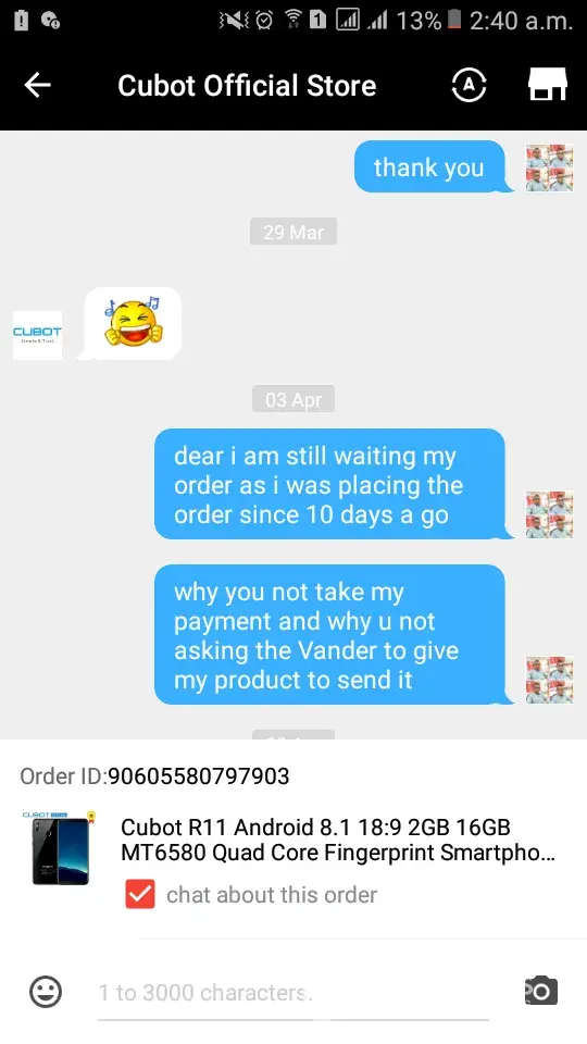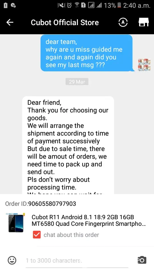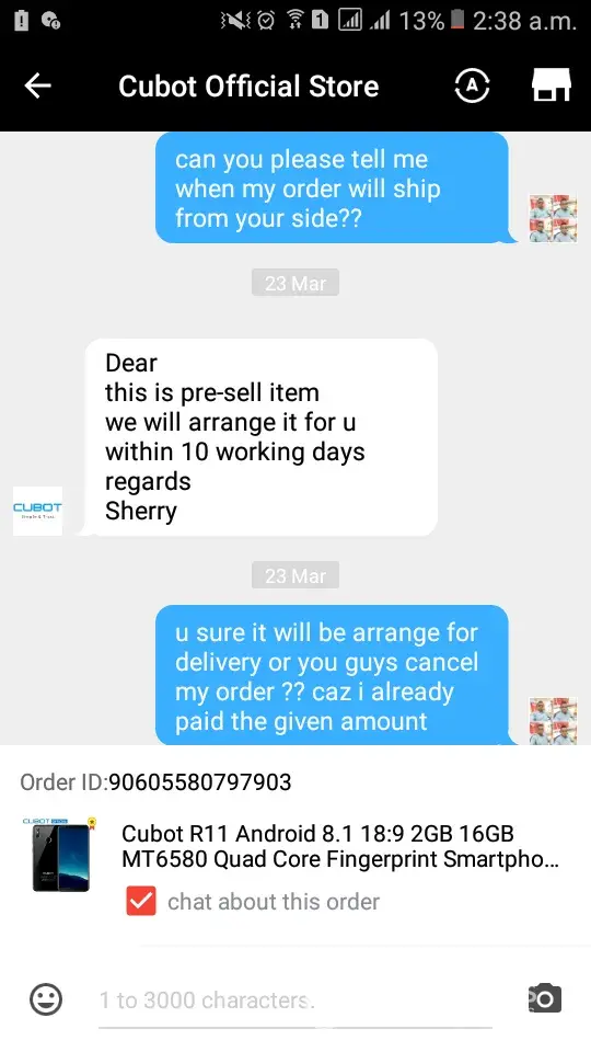 I was place my order on 20/03/2018 which is still udelivered and i also bagging with your staff sharry who always give me the lame excuses every time ask me to give more time now he ask me to cancel my order, why i cancel my order ? Why u guys take my payment when u didnt manage your orders? Now i want my product if you guys cancel my order then i will upload all the screen short of your live chat on media and i will ask to band your website