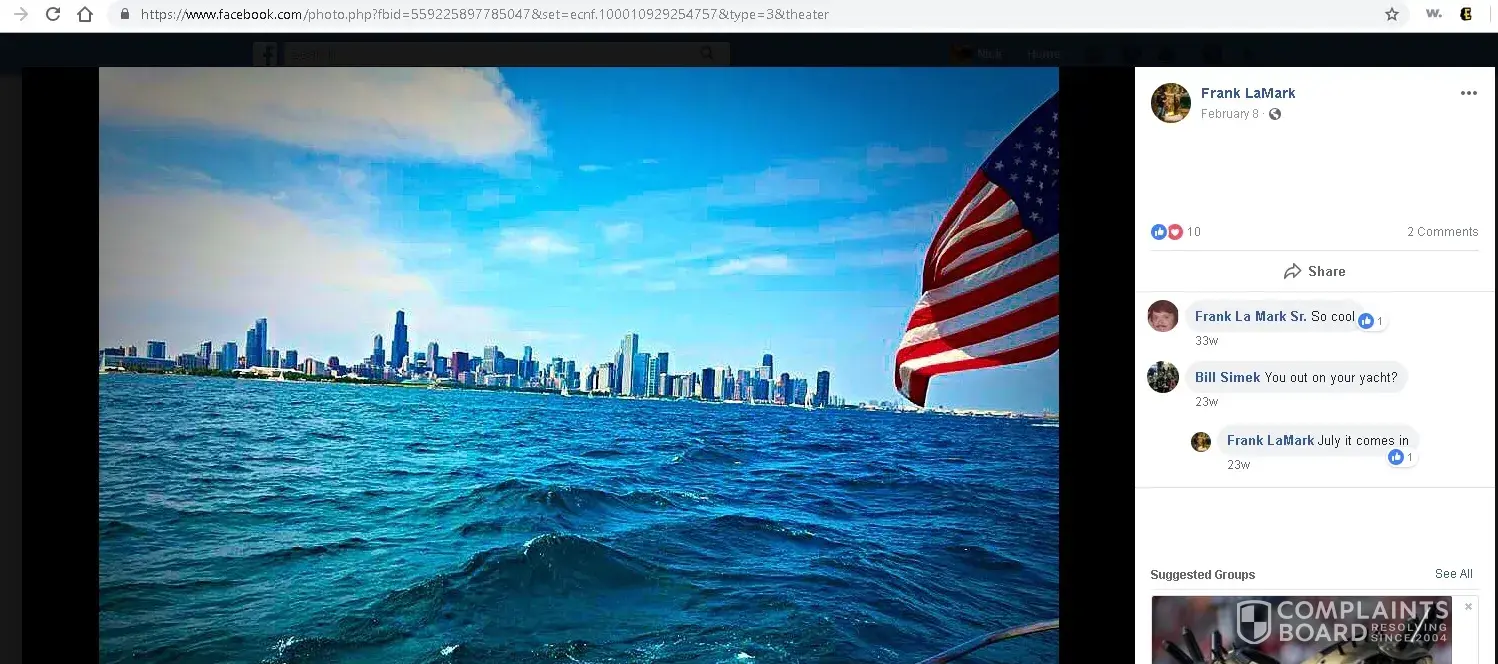 here's frank lamark and his new yacht that he bought from defrauding us. give him a shout on facebook and let him know how much we appreciate it. the judge will love to see this. just more evidence. sell the yacht and pay us frank. https://www.facebook.com/franklamark