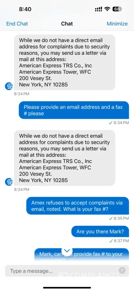 👉  Submit a complaint about American Express