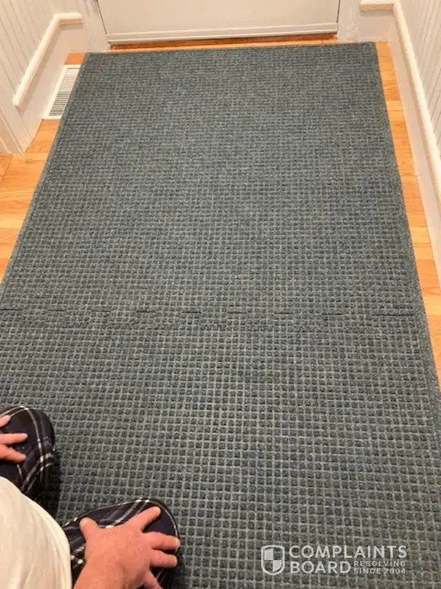 This has been a nightmare. I first ordered a 8x4 bluestone diamond rug that came in 5 inches longer...I was told if anything it would be a few inches shorter...so after contacting customer support...we were told that we had to pay for shipping the mat back to you folks, then after an email explaining that I was not pleased with having to pay for shipping... i was sent a packing slip. Then we ordered a 8x4 bluestone mat waffle...after I was told this pattern would be more accurate and would come in a few inches shorter...that was fine. We received the 8x4 waffle mat...it looks terrible...there is a seam down the middle and is lifted...appears you guys used 2 4x4 and glued them together on the rubber backing...not only does it look stupid, it is lifted and the waffle pattern does not line up...see pics...I have purchased rugs from you folks in the past...not sure whats going on there. We returned the previous diamond colored rug 10 days ago and have not received a refund for that...This workmanship is not acceptable...and this mat needs to be returned...please send a packing slip to me and I demand a refund! See the 2 pics below