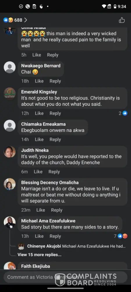 I am Victoria Genshakah, a concerned individual, sending this in regard to a comment left by one of your employees, Michael Ama Ezeafulukwe, under a BBC Igbo post on Facebook. The post in question was a video, published on 29th April, 2025, in which the twin sister of a woman, (Osinachi) who died from constant physical, mental and emotional abuse...