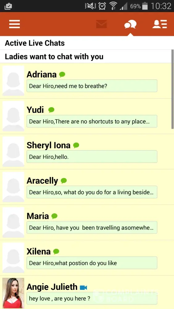 and instantly connects. When I asked when she met with her clients, she never answers, just goes on to another topic. Specific questions are never answered, so I think they just make up their occupation! I think a number of these girls are in one of your call centers and are paid to keep us chatting just as one of the former employees in one of the lawsuits said! Also they are so brainwashed, or threatened, about sharing addresses etc. I share addresses all over the world and never had a problem, so that is a bunch of BS. They also are so loving and want to meet you and be your wife etc, yet if you ask to meet them, there is always the excuse that they want to slow down and chat for a few months more...so they can make more money off you? I get tired of being accused of money being more important than love. Love doesn't pay the bills. If these girls are serious, then let them pay for half of the chat, or video chat, or camshare, and for all the gifts and virtual gifts. I bet no guys would get hit on in that case. I know you say you tranlate for the girls, but if you do, you are doing a poor job because some of the letters are pathetic! This site caters to the very wealthy and they make poor husbands! I am not wealthy, but I am frugal, and I cannot afford even 10 miutes of camshare. You are limiting these girls that are serious to wealthy clients, and they are all going to be sorry if they marry a rich man because they will be nothing more than a toy to be used until the guy is tired of them. I do think a few of the ladies on this site may be seriousand are not getting paid to keep us chatting. They are the ones that don't have 20 or more professional photos and when you tell them you are running out of credits, they say ok, nice chatting with you, and that is it! They don't criticize and tell you how cheap you are etc. I can get on any dating site in the world for less than $200 a year and meet just as many beautiful women and exchange all the info I want. If you want to talk to one girl for a year one hour a night, it will cost you $25000! And you will get nothing for it...she is not going to meet you or give you any contact information. This site is just prostituting these girls and they are making millions off them. They must threaten them about giving any info. Personally, I wish someone would investigate them, close them down and refund everyone's money!