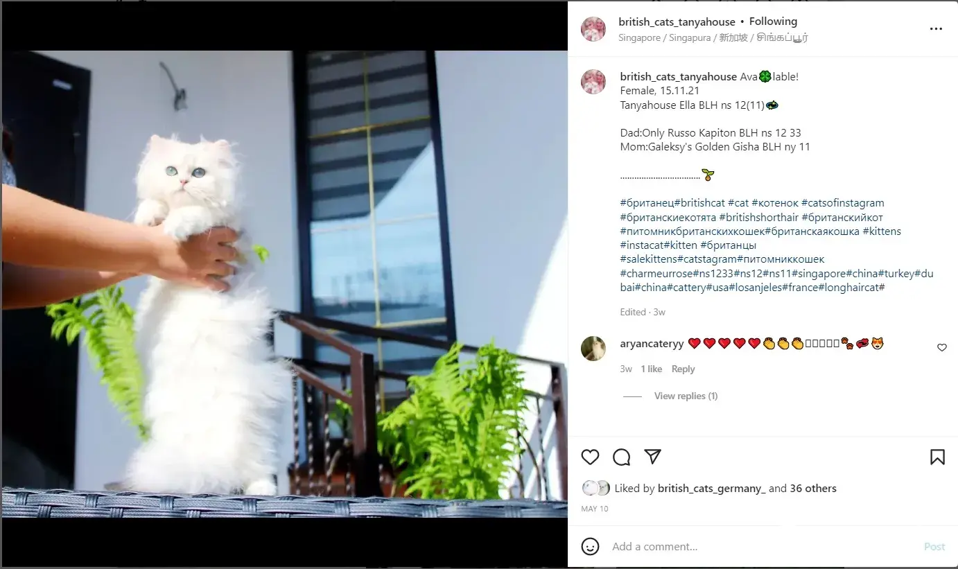 Tanyahouse breeder of British longhair cats  (Татьяна и Ольга Евсеенко) - they have a few Instagram pages:  https://www.instagram.com/british_cats_tanyahouse https://www.instagram.com/british_cattery_tanyahouse/ https://www.instagram.com/tanyahouse_cats_british/ Phone number [protected] They are selling cats displaying...