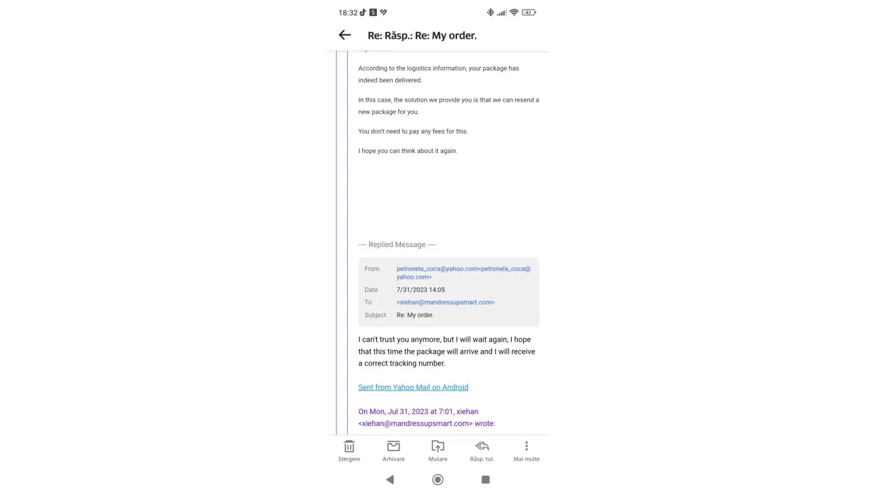 I placed the order on June 9th with this company and even until today, August 26th, I have not received anything. I have contacted them through countless emails without any response .The money was taken from the account but the order has not arrived, you always find excuses in every email I send.Order number 6IF42-74P73 YW.Amont paid $45.98. Date paid Jun 9 ,2023,9:52:54 A M