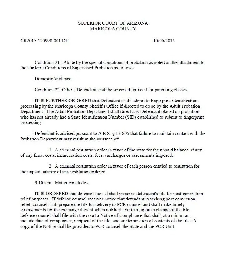 Attached are the court order and terms under which this criminal was allowed to walk free.