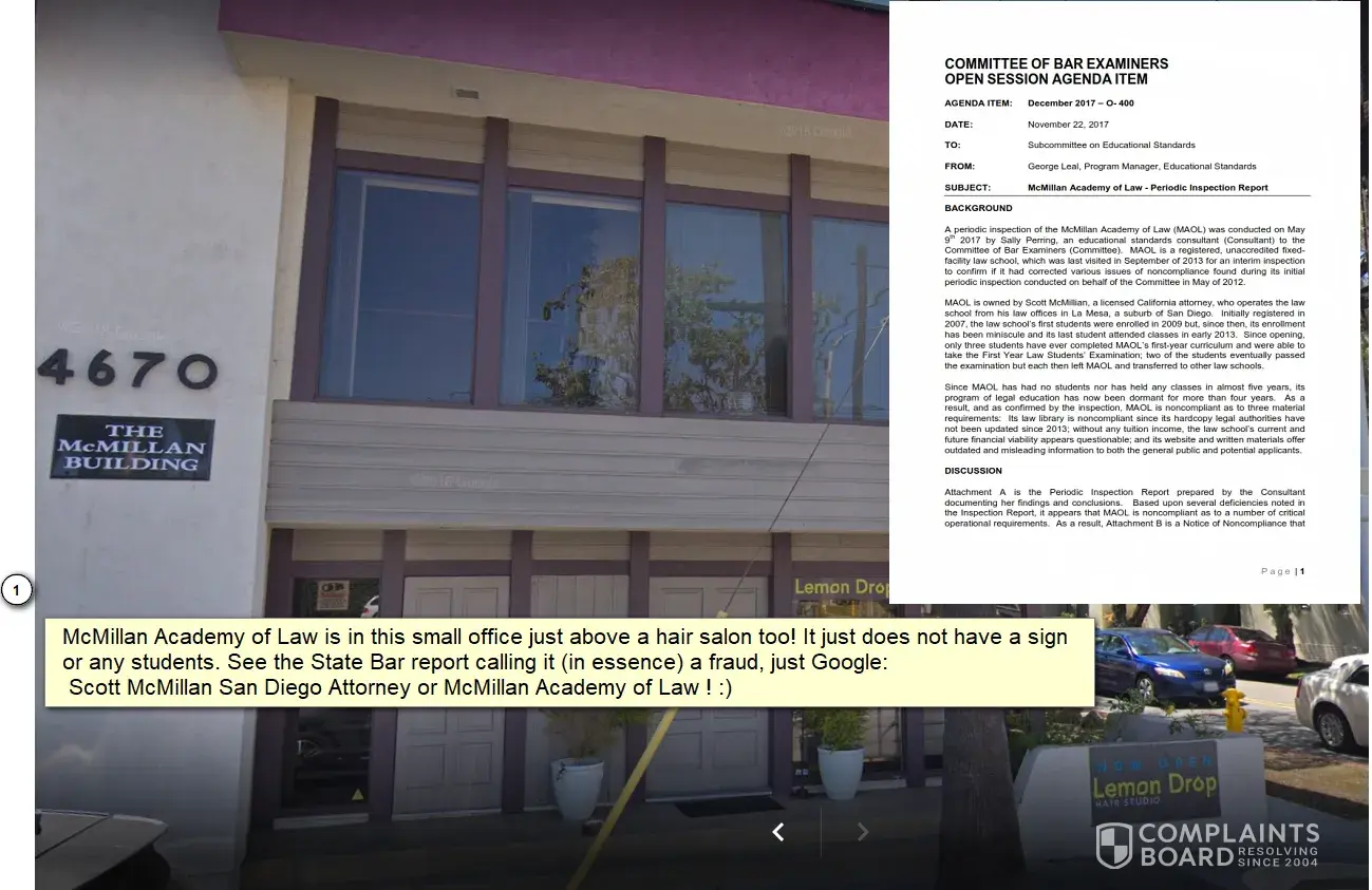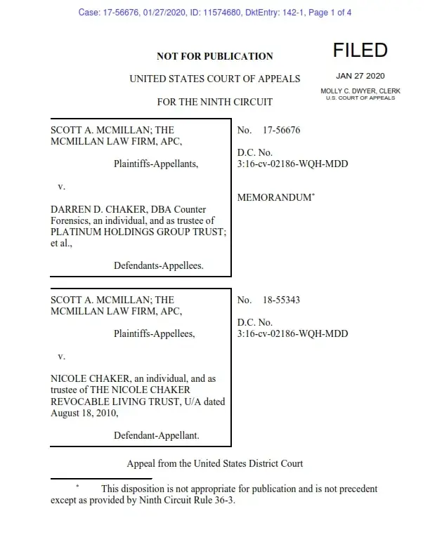 San Diego attorney Scott McMillan to remove public records sanctioning his conduct. The federal court dismissed the lawsuit and found it to be meritless. Scott McMillan with an office in La Mesa, California (east San Diego), then appealed to the Ninth Circuit. On January 27, 2020, the appellate court found the lawsuit aimed at censoring speech was meritle...