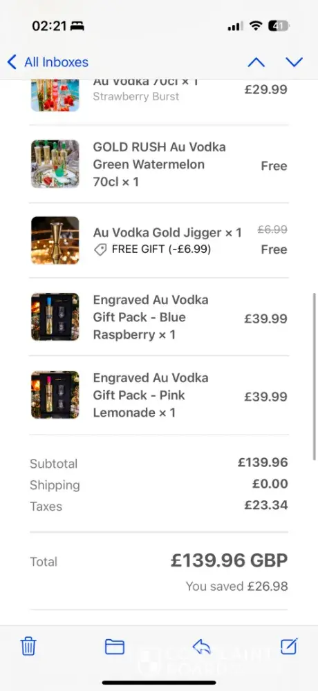 Read full reviewAU Vodka Reviews and Complaints