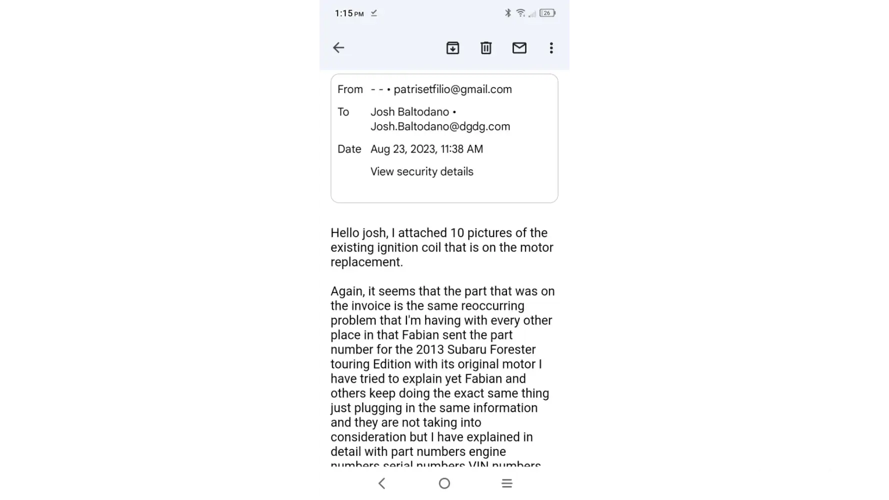The motor on a 2013 Ford service changed out with something different and the ignition coil ordered for the replacement motor does not fit every rep that I speak to does not understand it is not the same motor and I sent ample identification information but no rep will think and they keep entering 2013 Subaru Forester and... The wrong part... I need somebody that can actually think to research the part number.