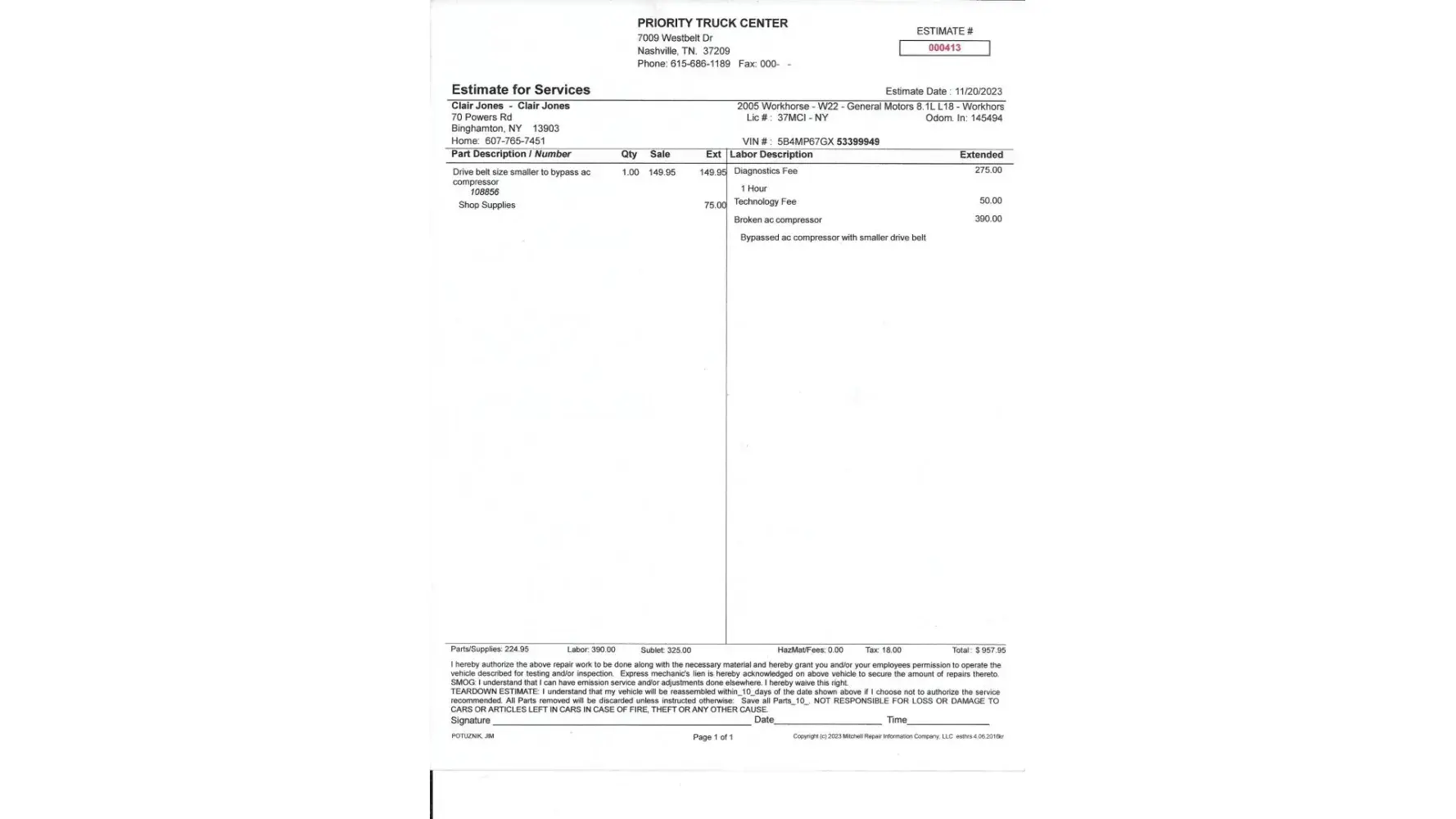 Priority Truck Center - Unauthorized repair charges