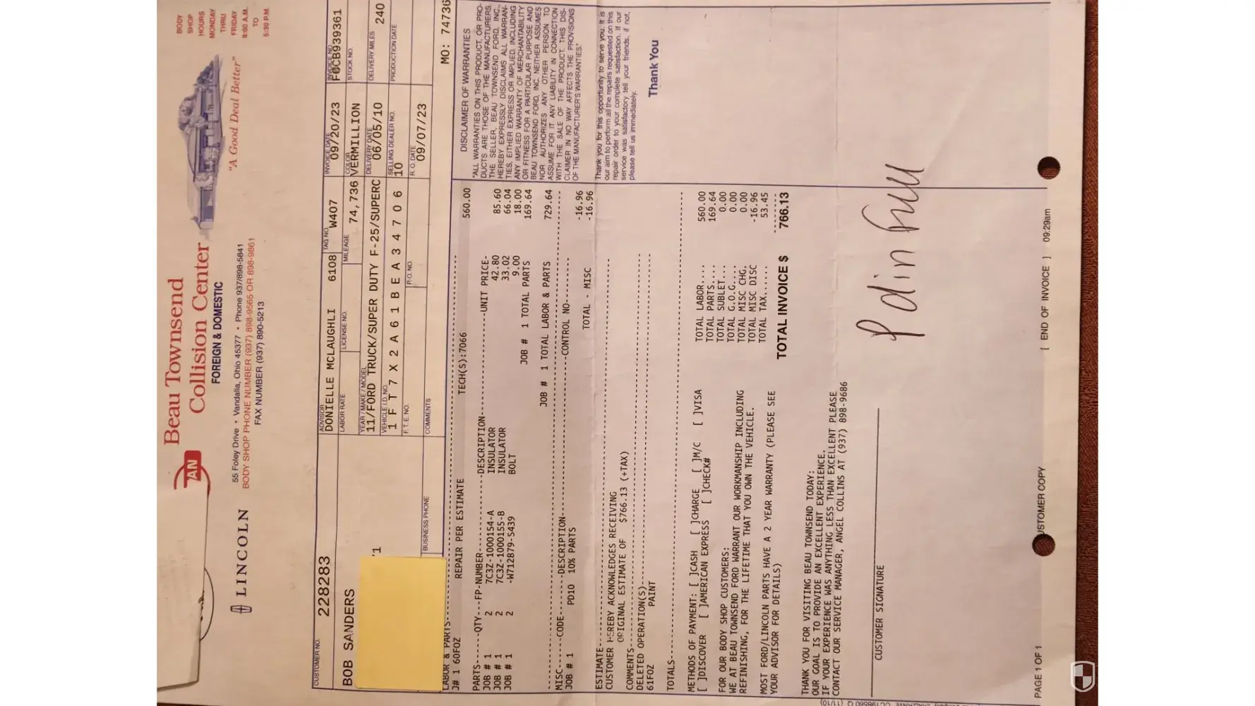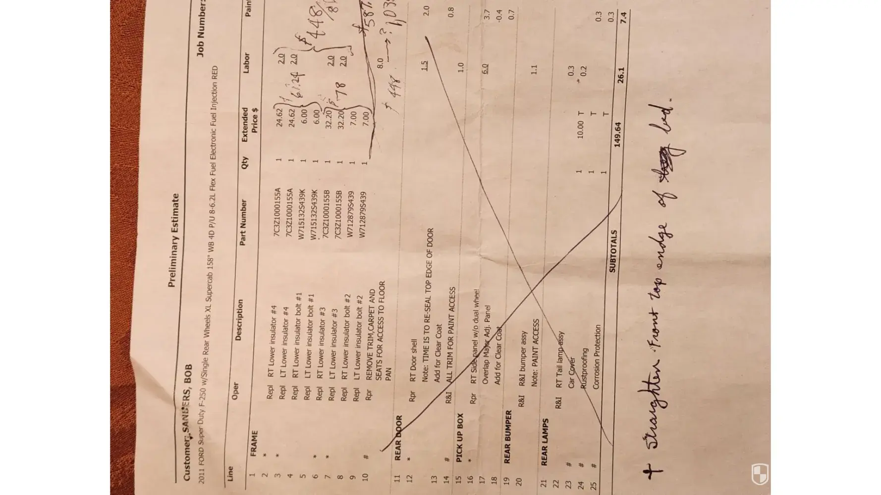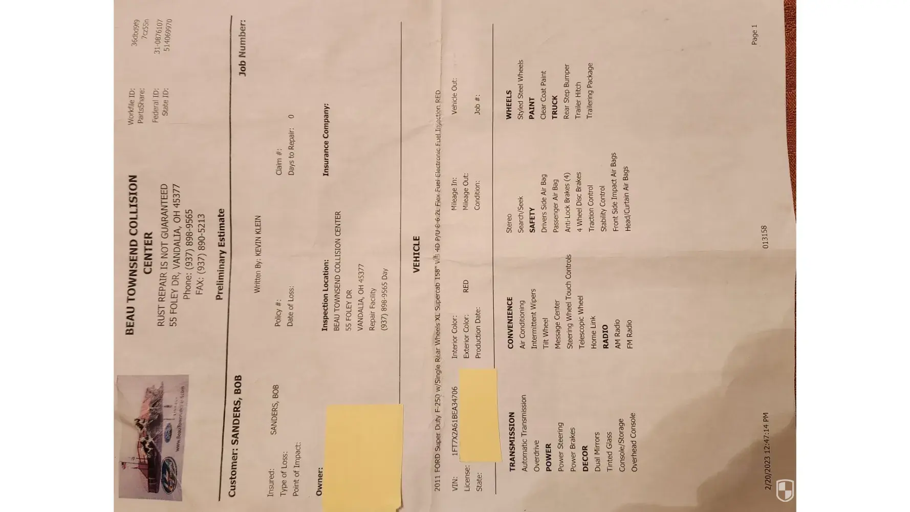 Critical item to keep in mind while reviewing: Below is the only estimate from Beau Townsend. I had a concern about line ten. Not all jobs require removing the interior and it is done only if a bolt spins instead of backing out. I asked Kevin Klein many questions about line ten. Key answer from Kevin was that Beau Townsend does lots and lots of these job...