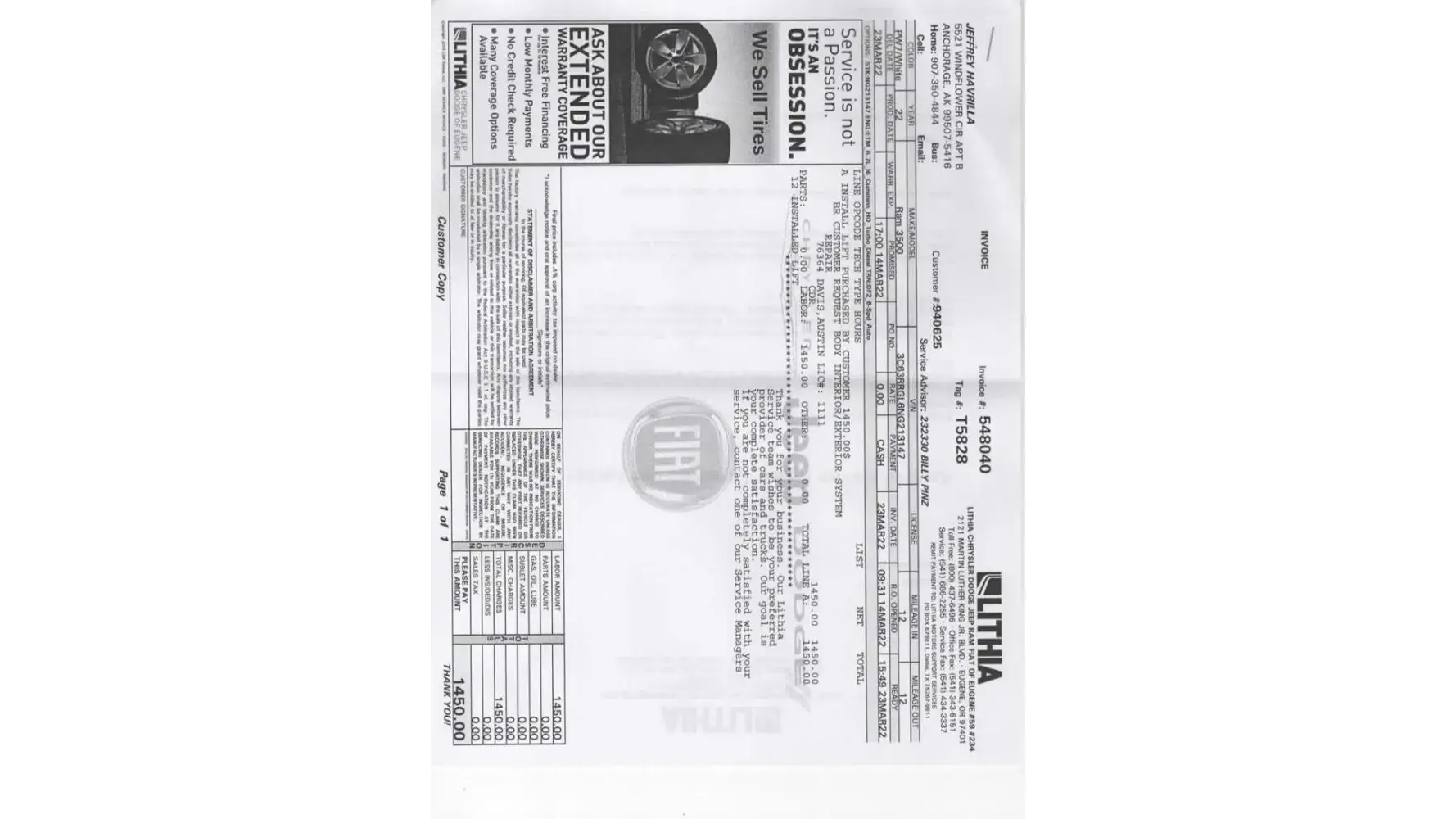 I had a lift kit dropped shipped for installation on my 2022 3500 Ram dually to this dealership prior taking possesion of the truck. I paid for that installation separately. Upon driving it home from Eugene to Bend OR i discvored a main suspension spring incorrectly installed. It was agreed Bend would correct the problem and bill Eugene for the labor. Thi...