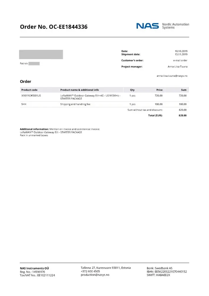Read full complaintNAS Nordic Automation Systems - IX1011C#SS01US (Lorawan gateway)