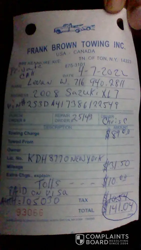 Read full complaintUnited Towing / AW Towing - Repossession